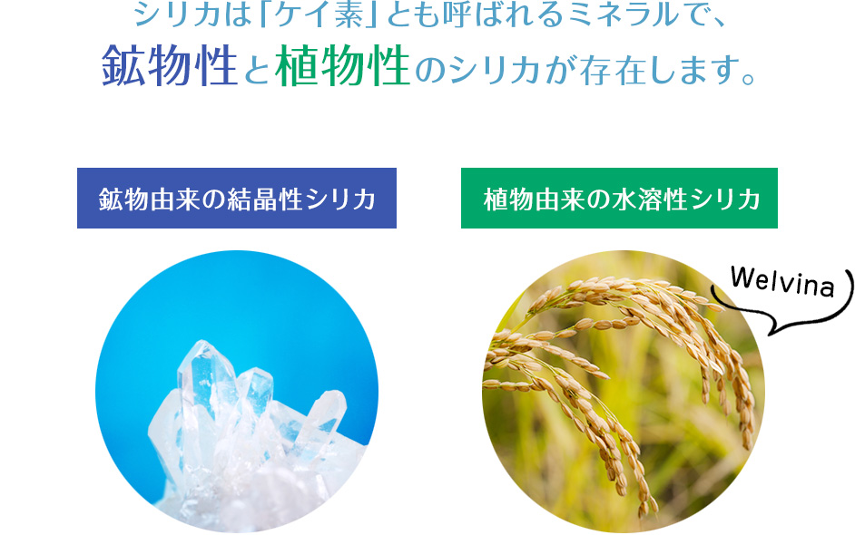 Welvinaのシリカは日本米のもみ殻から作られた植物由来の水溶性シリカです。