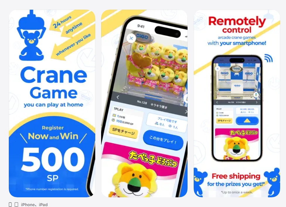 GiGO ONLINE CRANEは、スマートフォンやパソコンから本物のクレーンゲームを遠隔操作し、景品を獲得できるオンラインサービスです。ゲームセンターに行かなくても、自宅にいながらリアルなクレーンゲームを楽しめる点が大きな特徴です。